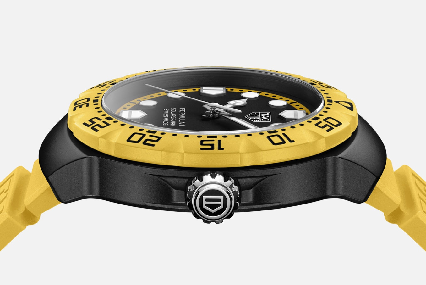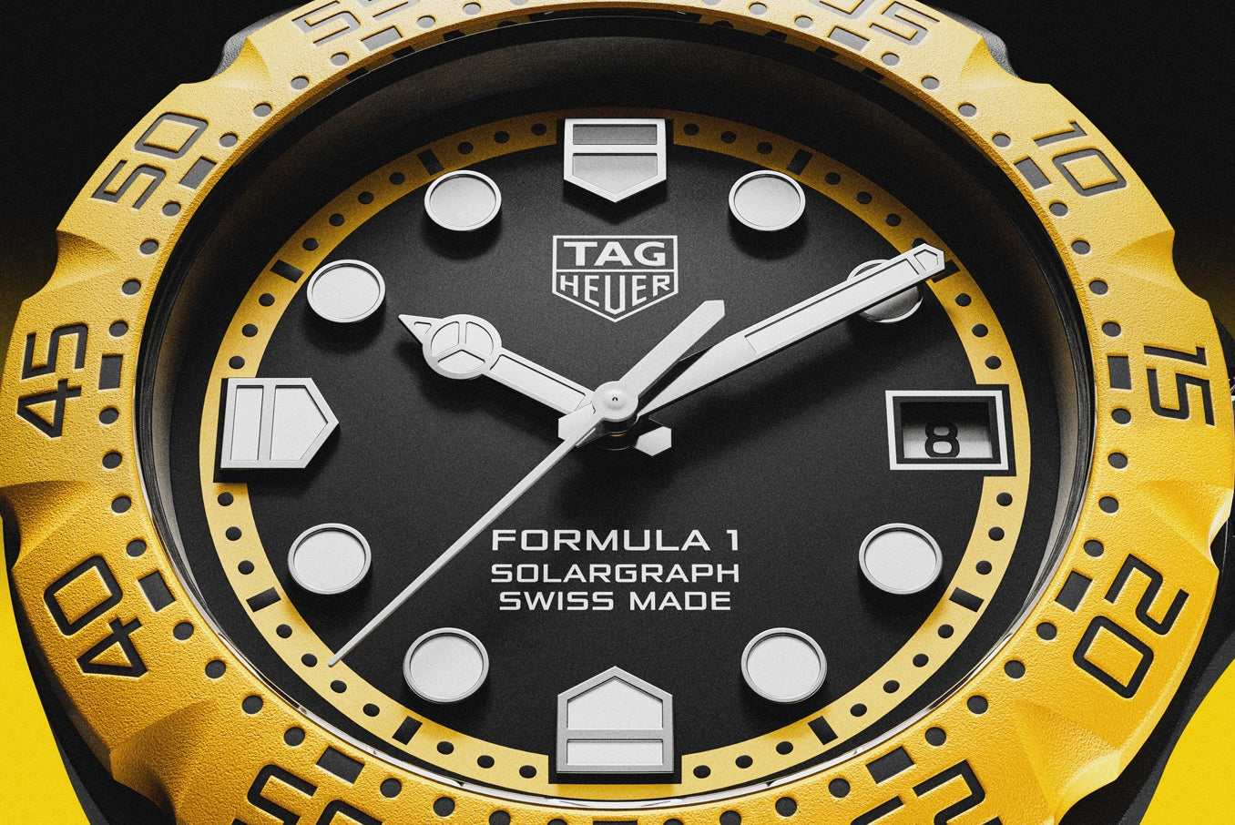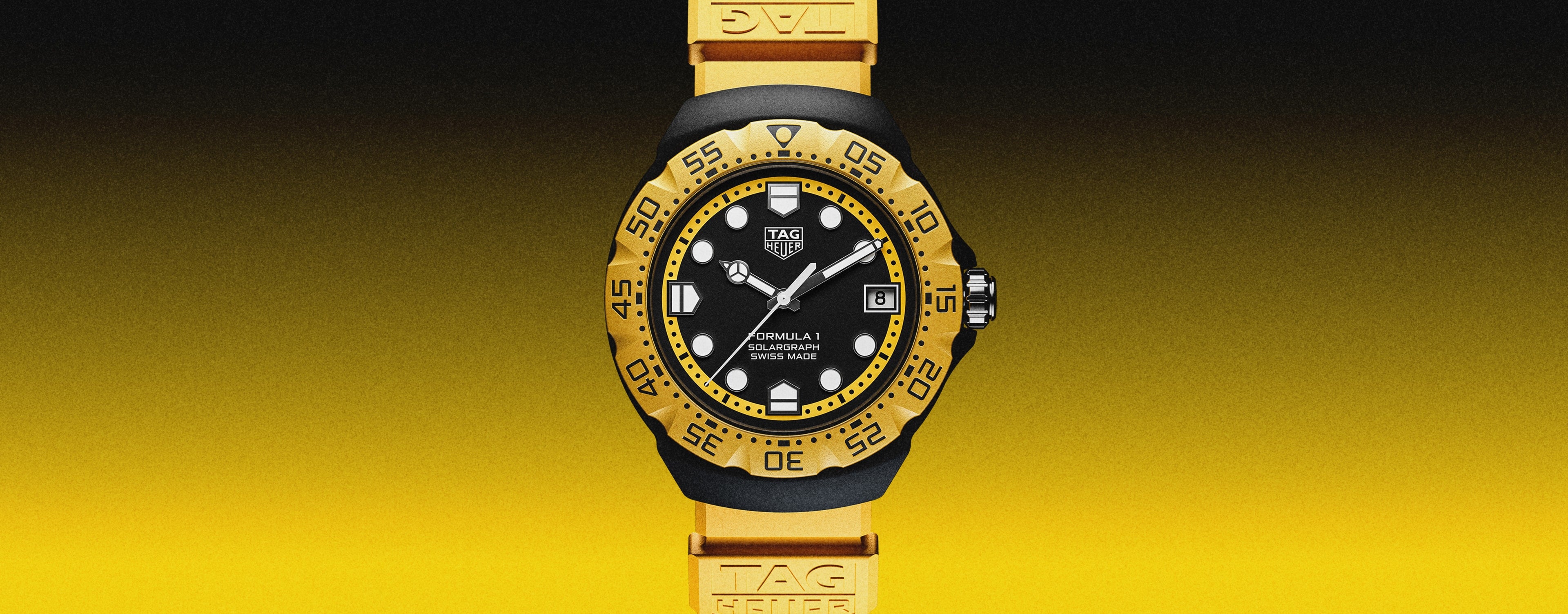 O mostrador em opalino preto é realçado por um vibrante flange em amarelo e bezel em TH-Polylight combinando, conferindo um contraste dinâmico ao design. Os ponteiros e índices, revestidos em Super-LumiNova® branco, garantem uma legibilidade perfeita durante o dia ou à noite.