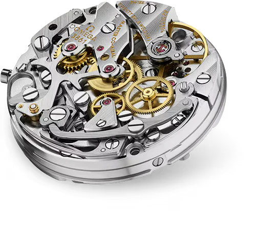 O relógio é alimentado pelo calibre OMEGA Co-Axial Master Chronometer 3861 – a atualização mais recente do lendário movimento Moonwatch. Foram precisos quatro anos para produzir um calibre que fosse capaz de alcançar a certificação Master Chronometer e simultaneamente corresponder às dimensões do movimento Moonwatch anterior – o 1861.